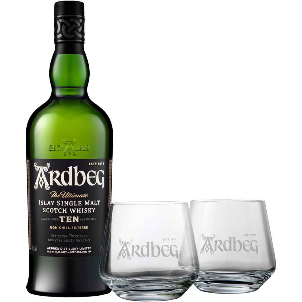 Dieses Set, bestehend aus einer 0,70 Liter Flasche Ardbeg 10 Islay Single Malt Whisky und 2 passenden Gläsern, eignet sich perfekt als Geschenk für Whisky-Liebhaber oder als besonderes Genusserlebnis für dich selbst. Tauche ein in die Welt des rauchigen Islay-Whiskys und entdecke das einzigartige Geschmackserlebnis von Ardbeg.